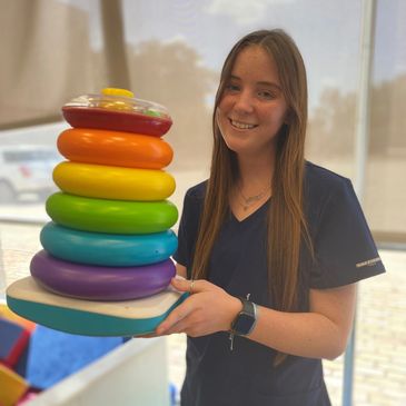 Maddie is our amazing early intervention specialist who comes to us from Texas A&M where she received her Bachelor of Science in Biology in May 2023. During her time there, she was a member and director of “Providing Smiles and Understanding Needs” (PSUN), a nonprofit organization that serves kids with special needs in the Bryan-College S